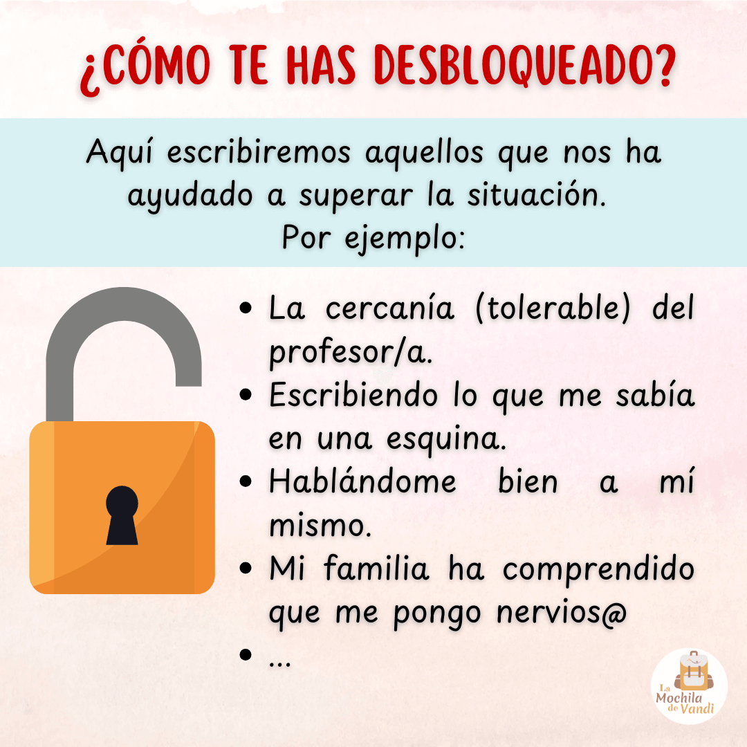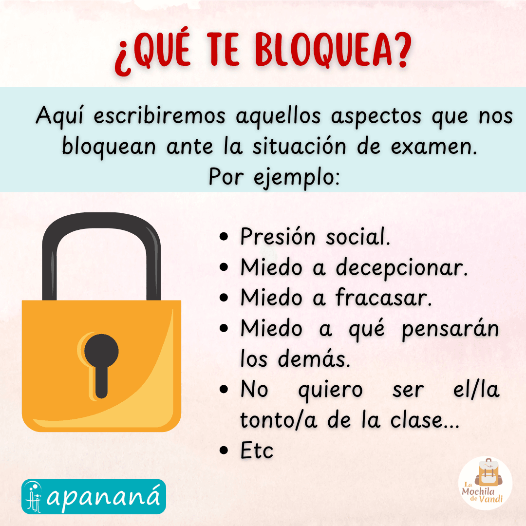 Bloqueos ante los exámenes Os presentamos un recurso muy sencillo para trabajar la identificación y abordaje de los bloqueos ante los exámenes. Descárgalo aquí