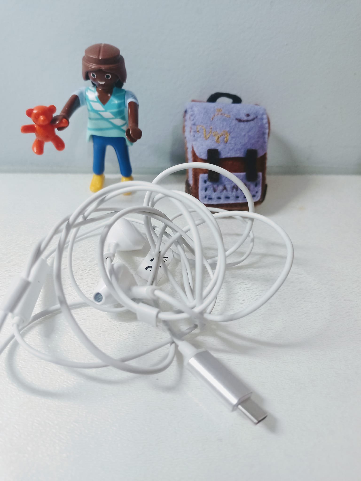 🎧 Esta mañana de jueves y tan de lunes a la vez (día 9/Dic), MiniVandi se ha frustrado mucho porque se le han enredado los cascos, yo llevaba todo el puente diciéndole que se los desenredaba pero ya sabéis… ni caso, ella solita todo…