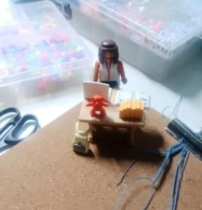 Hoy he puesto a mini Vandi a currar un rato mientras yo (intento) hago micromacramé.El caso es que me suelta de repente «oye tú no puedes hacer algo que no tenga que ver con tu trabajo, que sé que te gusta pero