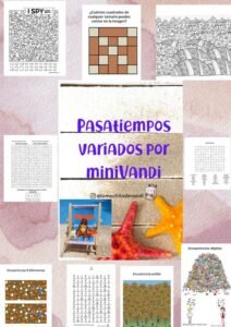 Seguramente esto no os interesa pero miniVandi ha insistido en que os lo comparto por si acaso, os deja por aquí el cuaderno de pasatiempos que se ha hecho, unas 65 páginas con minijuegos. Como entenderéis está muy adaptado a lo que