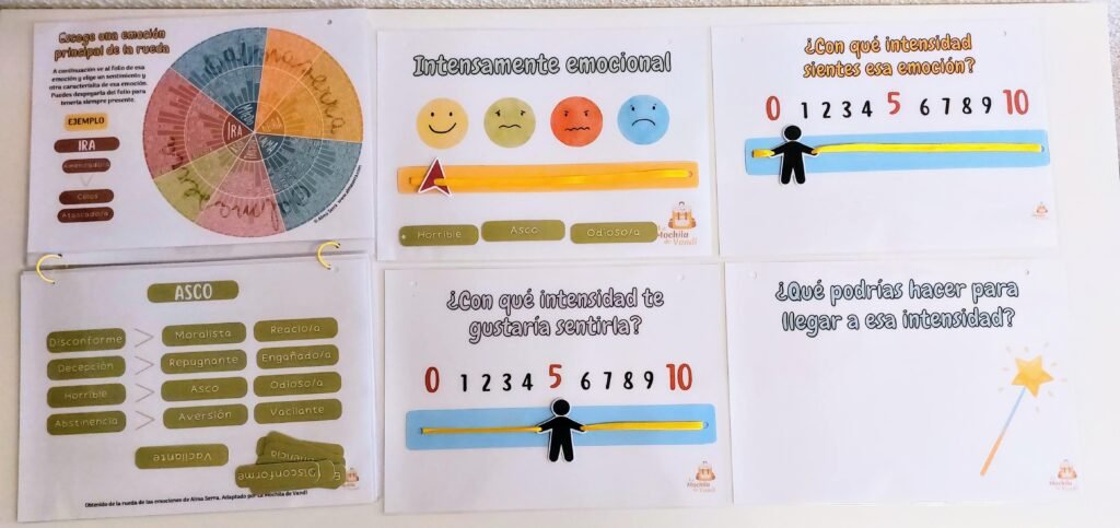 Las tarjetas que veis bajo la rueda son esos mismos sentimientos. Esto está pensado para que podamos trabajar individualmente sobre cada uno de ellos.